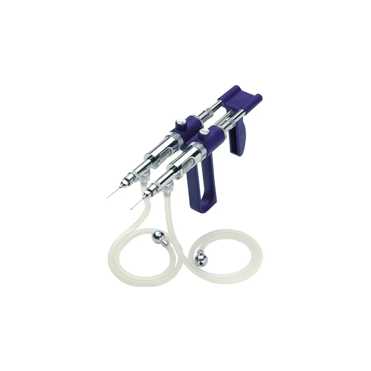 SOCOREX Otomatik Enjektör 1 ml İkili Twin Model 2872 aynı anda iki farklı aşıyı 0,1-1 ml arası hassasiyetle enjekte edebilen çift çelik pistonlu ve hortumlu bir enjektördür Seri ve pratik uygulamada çığır açar.