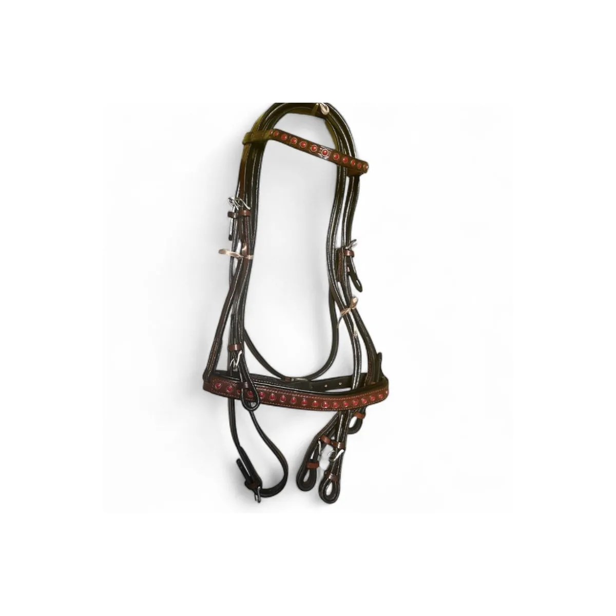 Eşit Baskı Dağılımı: Hassas ayar tokaları sayesinde dizgin komutları atın kafasına dengeli bir şekilde iletilir.