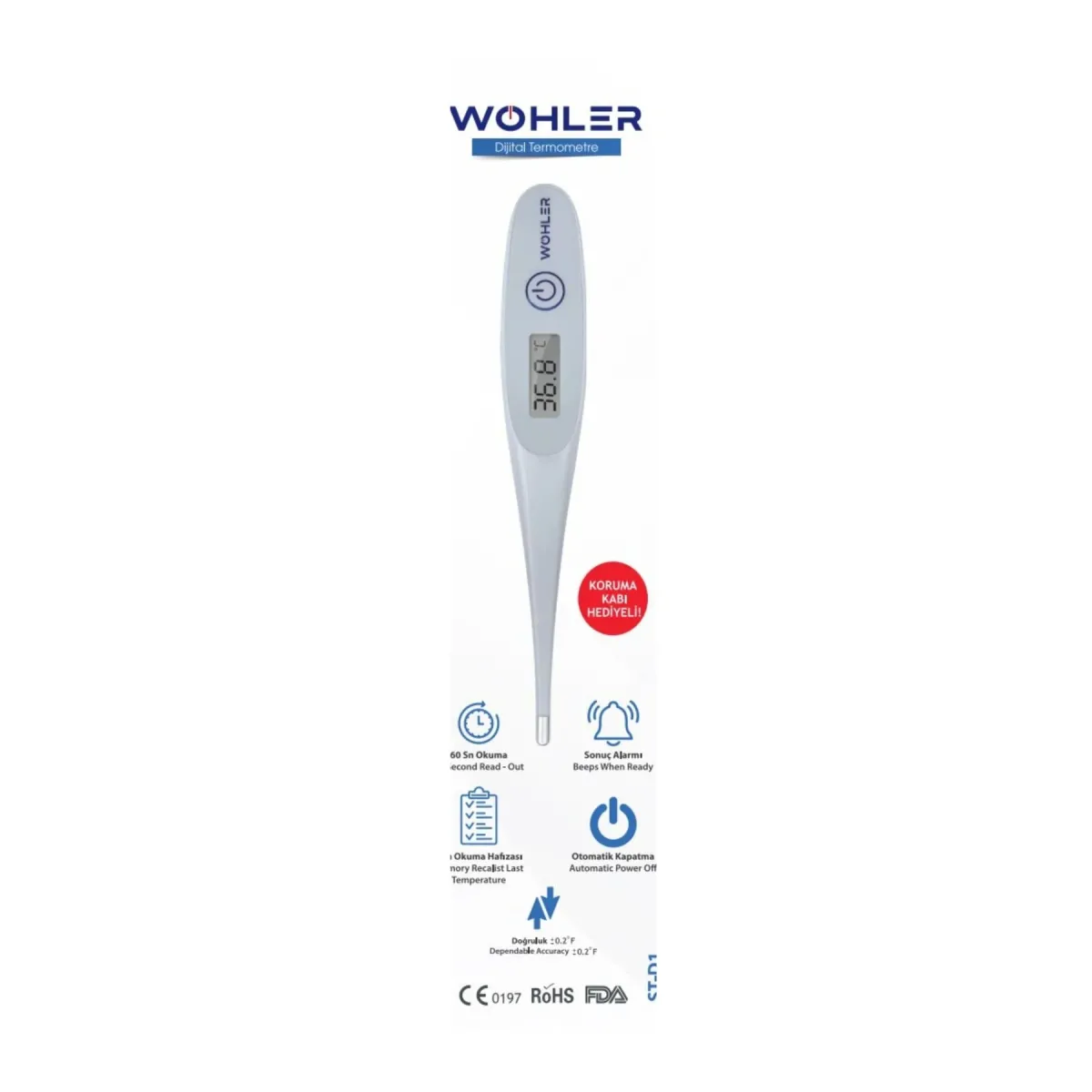 Yüksek Ateş Uyarısı: Yüksek ateş durumunda farklı bir ses tonu ile uyarı veren bu termometre, ciddi durumları hızla tespit etmenizi sağlar.