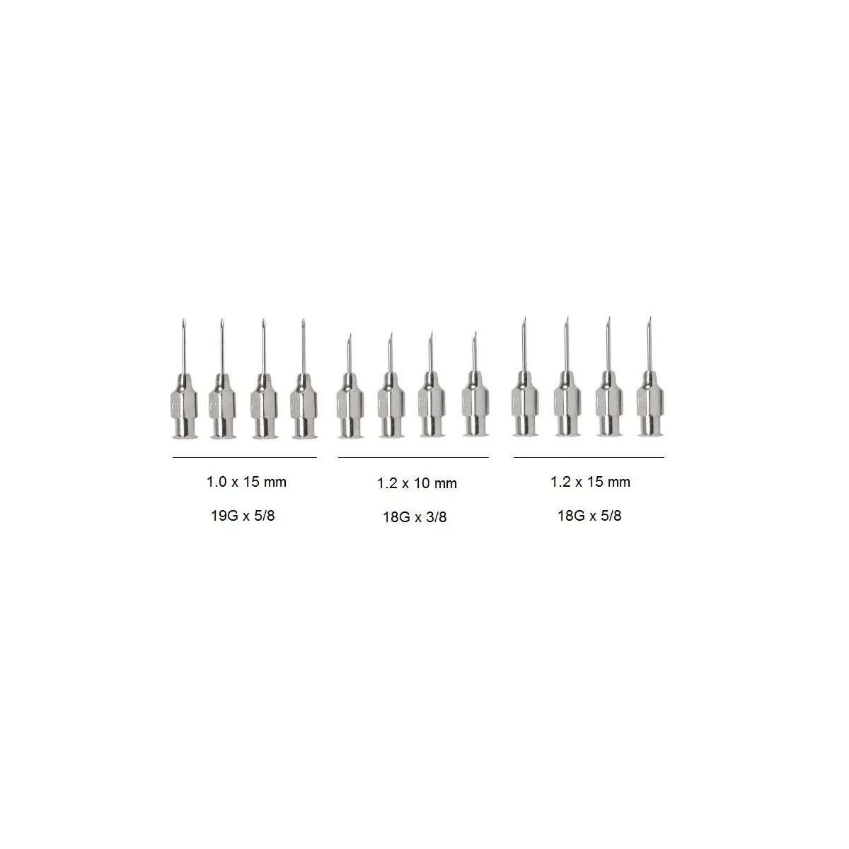 Kuzular için özel olarak hazırlanmış 12’li paslanmaz çelik karışık enjektör iğne seti. Güvenli Luer-Lock bağlantılıdır ve sterilizasyona dayanıklıdır.