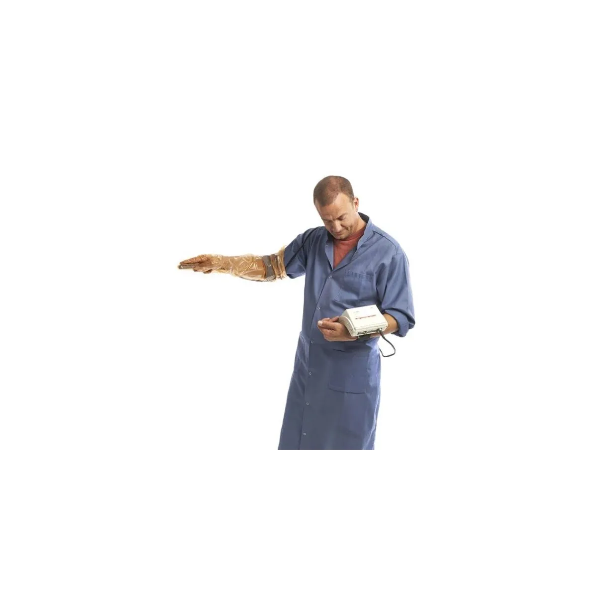 Omuz korumalı 6 parmaklı tasarımı ile ultrason destekli rektal muayenelerde tam koruma, yüksek hassasiyet ve konfor sağlayan özel vet eldivenidir.