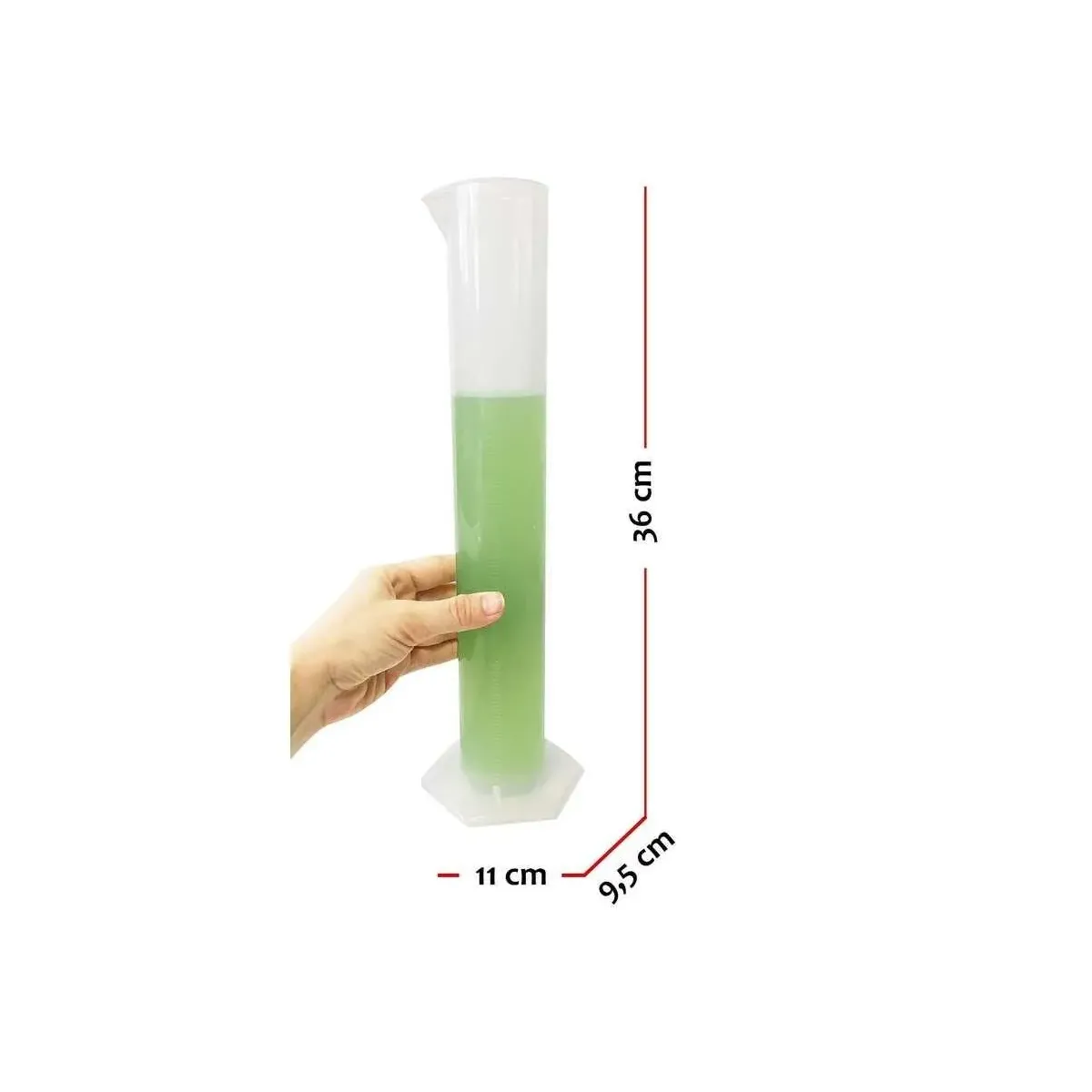 500 ml hacimli, uzun form PP (polipropilen) plastik mezür. Kabartma baskılı, altıgen tabanlı ve 135°C’ye kadar ısıya dayanıklı.