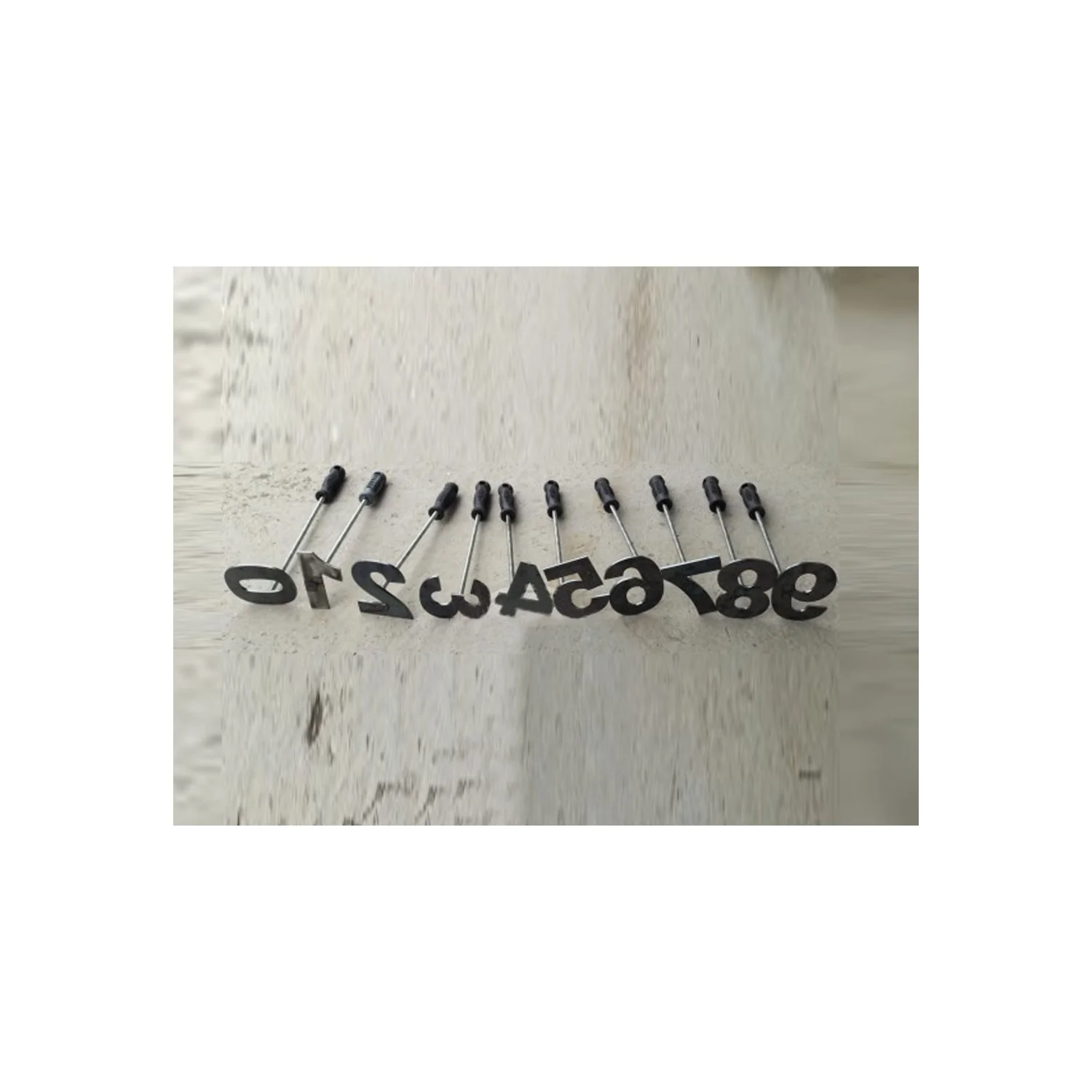 METAL KESİM NUMARA SAPLI APARAT- 0 İLE 9 ARASI 10 tane metal saplı numara hayvan numaralandırmasında kullanılır. Sadece hayvan sağlığında kullanılır.