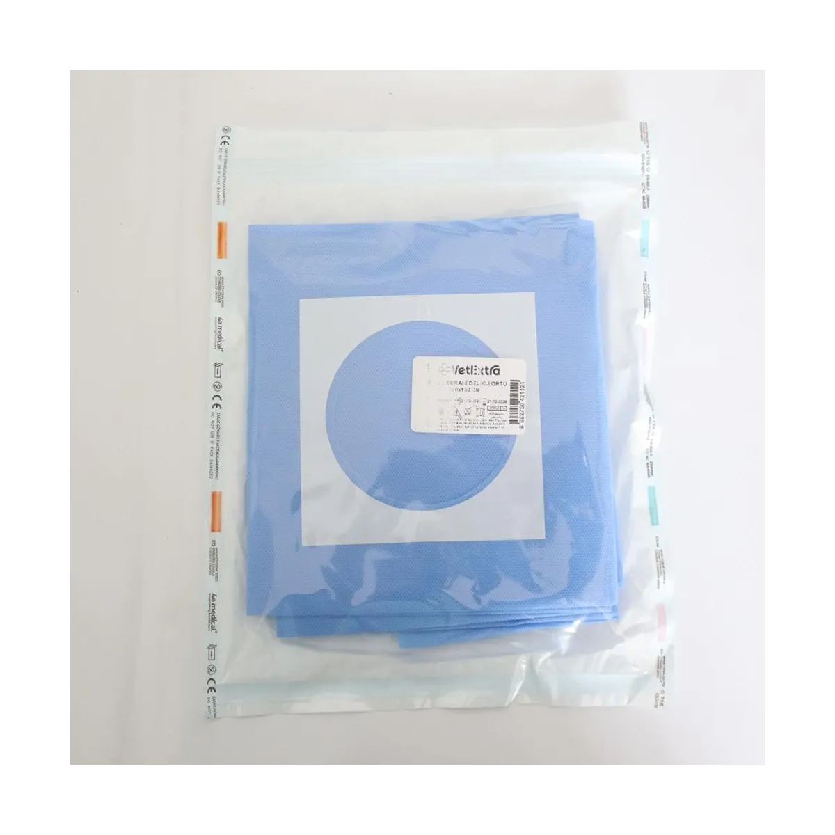 Steril Delikli Serviyet Örtüsü 120x150 cm ölçüsünde olup veteriner operasyonlarında işlem alanını izole ederek hijyenik ve güvenli bir çalışma ortamı sağlar