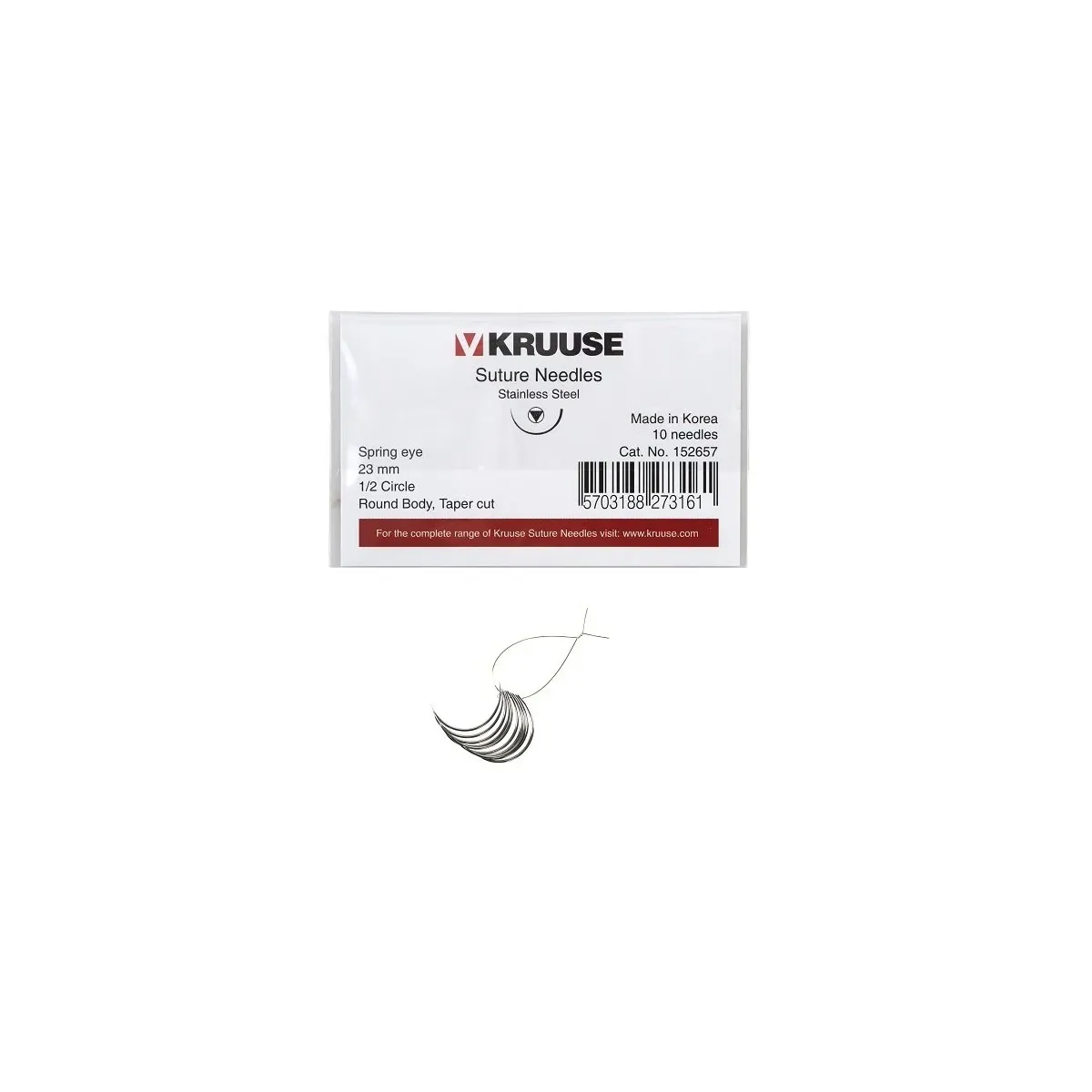 Paket içerisinde 10 adet 23 mm KRUUSE veteriner sütür iğnesi (Spring Eye) bulunur. Hemen sipariş verin ve cerrahi operasyonlarınızda güvenli ve hassas dikiş deneyimi yaşayın!