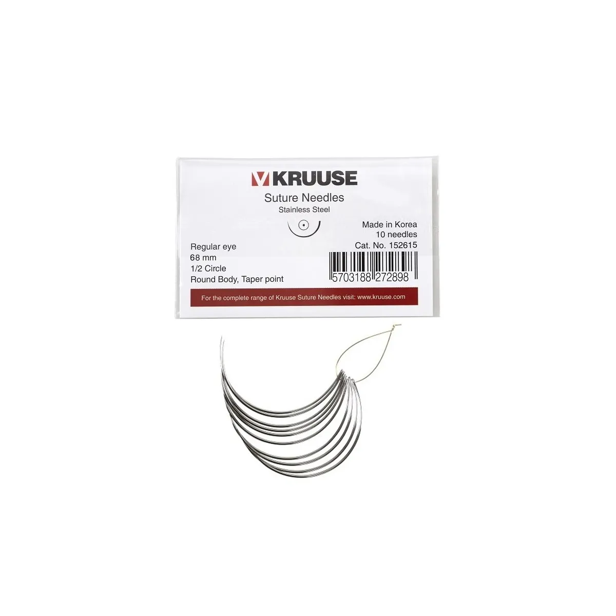 KRUUSE Veterinary Suture Needle Regular Eye 1/2 Round 68 mm 10/pk