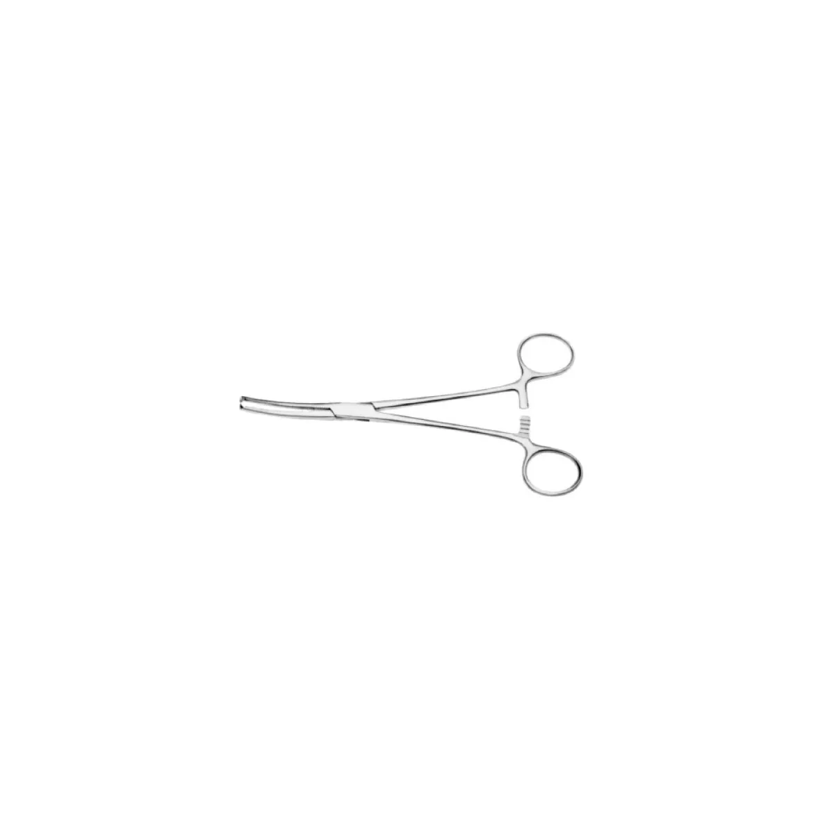 The curved tip design allows working in curved anatomical areas without obstructing the field of vision and offers a better access angle to the clamped area. The forceps maintain the applied pressure thanks to its locking mechanism, which is critical in situations requiring prolonged hemostasis or fixation.