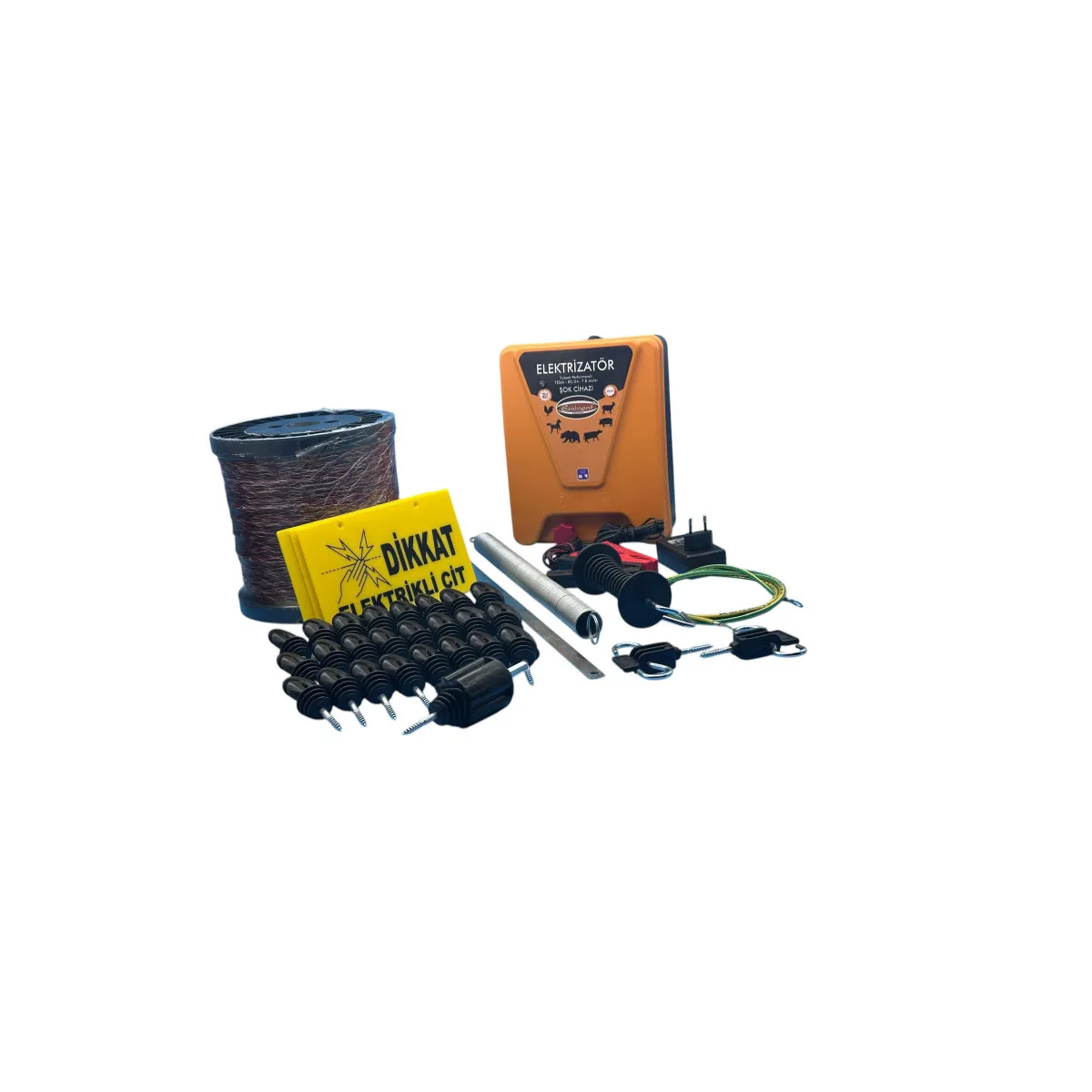 The Professional Series Electric Fence System is a fully equipped security solution designed to protect agricultural lands from wild boars and beehives from bears. It boasts a 10,000 Volt output power and a 7.8 Joule energy storage capacity. This domestically produced system, which holds the title of Türkiye's least prone to malfunctions, provides maximum deterrence even against the most aggressive wild animals and can operate with a 12V battery or a 220V/240V adapter.