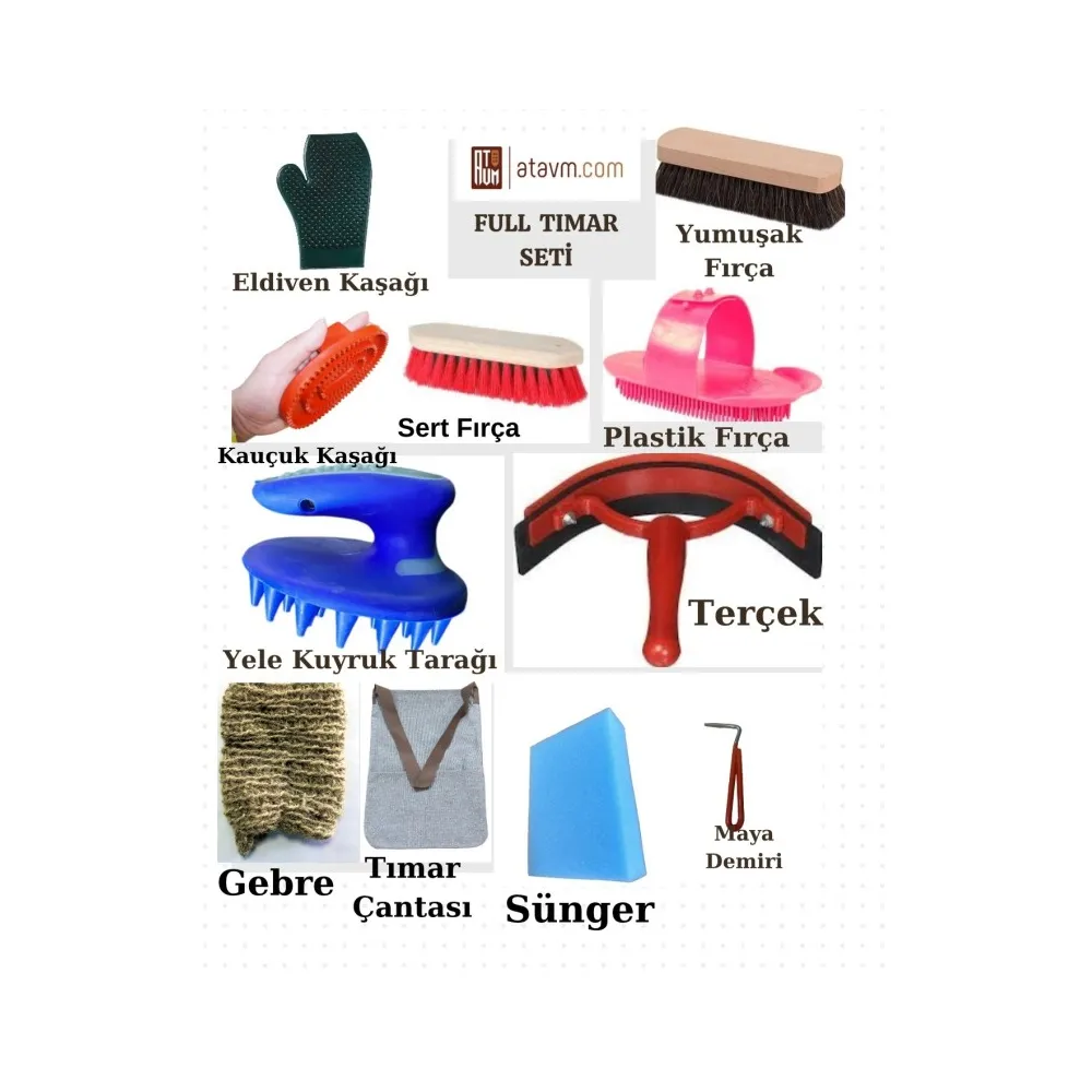 Plastik ve Yumuşak Fırça Seçenekleri Kauçuk ve Eldiven Kaşağı ile Derinlemesine Temizlik Özel Keçi Kılı Gebre ve Terçek Aparatı Paslanmaz Maya Demiri ve Yele Kuyruk Tarağı Sünger, Tüyçek ve Kompakt Taşıma Çantası