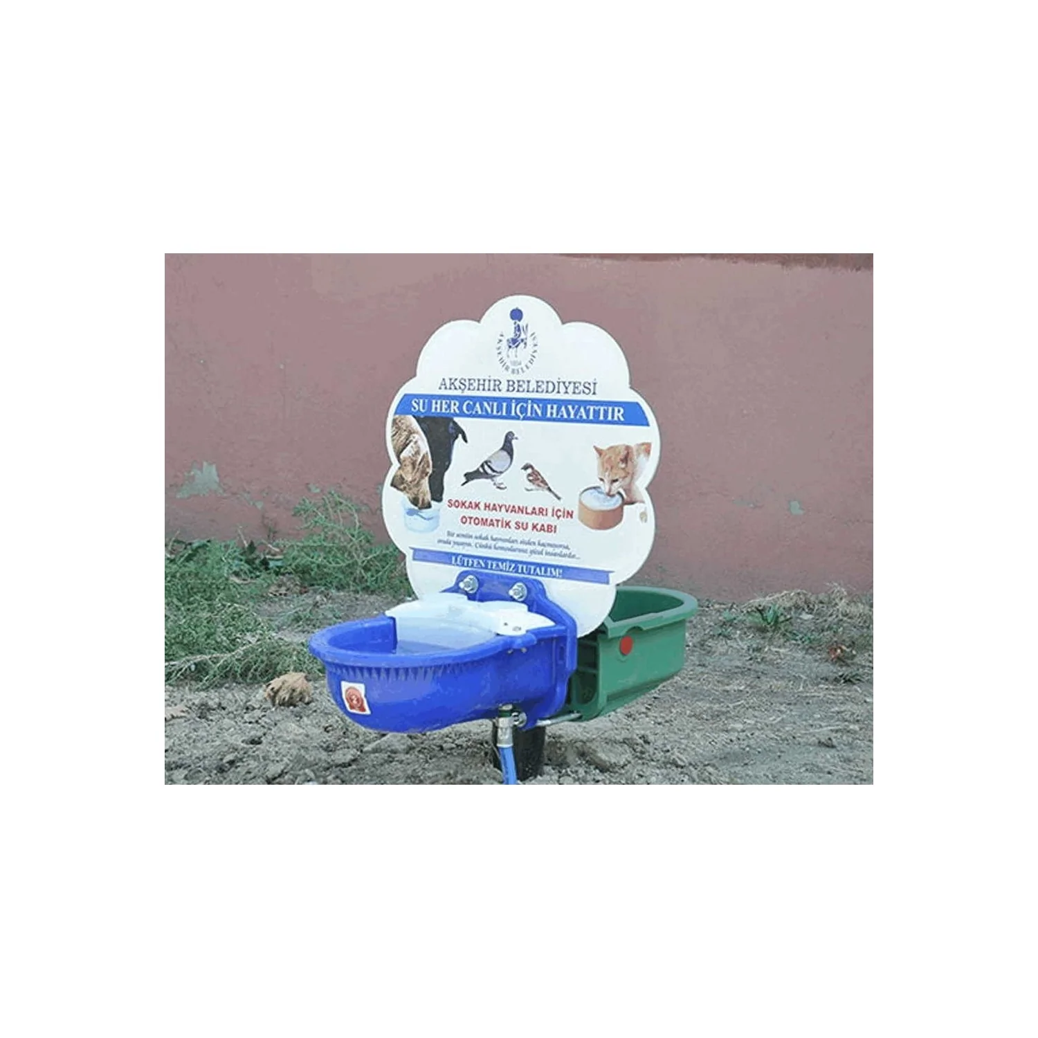 Tekli Otomatik Su Kabı Seti, sokak hayvanlarının temiz ve taze suya sürekli erişimini sağlamak amacıyla kırılmaz özel plastikten üretilmiş, tasarım tescilli ve tam donanımlı bir su ve yem istasyonudur. 26 cm×32 cm×16 cm boyutlarında olan ve 4 litrelik kapasiteye sahip bu mavi renkli su kabı, otomatik olarak dolan şamandıralı gizli mekanizması sayesinde su seviyesini daima ideal tutar ve kolay temizlenebilir yapısıyla hijyeni ön planda tutar. Ürün, montajı kolaylaştırmak ve hayvanlara uygun yüksekliği sağlamak için tüm aksesuarlarıyla birlikte, hazır bir set halinde sunulur.