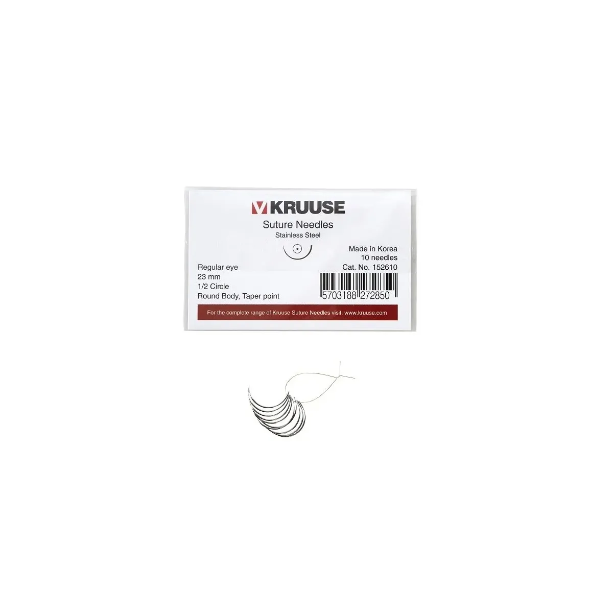 KRUUSE Regular Eye 1/2 Yuvarlak 23 mm sütür iğnesi, paslanmaz çelik, kolay ip takma ve veteriner cerrahisi için güvenli kullanım, 10’lu paket