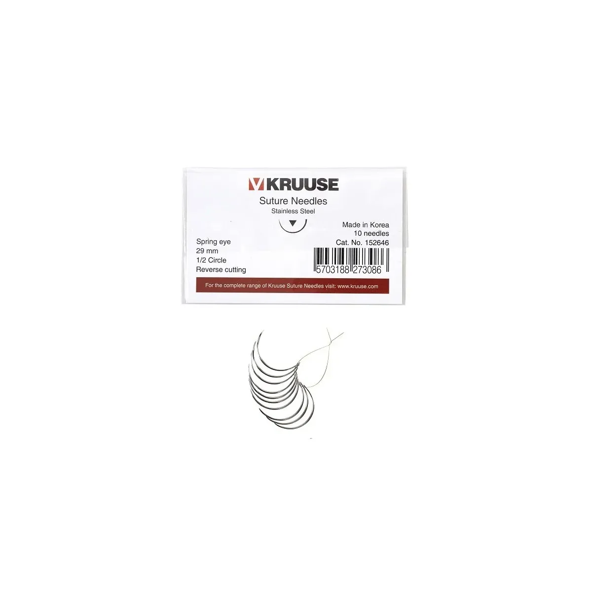 KRUUSE veteriner sütür iğnesi 29 mm, keskin reverse cutting ucu ve Spring Eye tasarımı ile veteriner cerrahilerinde hassas ve güvenli dikiş imkânı sunar. 1/2 circle formu sayesinde dokulara minimum zarar vererek operasyonlarda kontrolü artırır. Paslanmaz çelikten üretilmiş bu iğne, uzun ömürlü ve dayanıklı kullanım sağlar.
